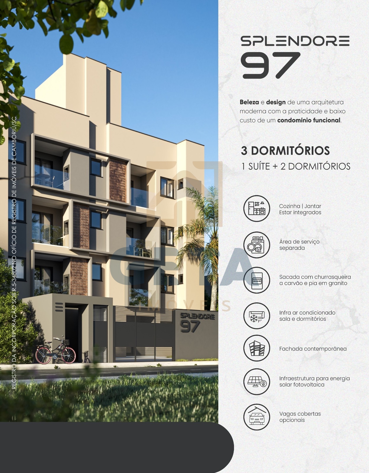 Apresentamos o Splendore, um edifício moderno e prático, localizado em uma rua sem saída, ao lado do centro de Camboriú. Aqui, você terá a tranquilidade e segurança em uma localização estratégica e próxima de tudo. Destaques do Empreendimento- Arquitetura contemporânea e paisagismo com iluminação externa- Condomínio...
